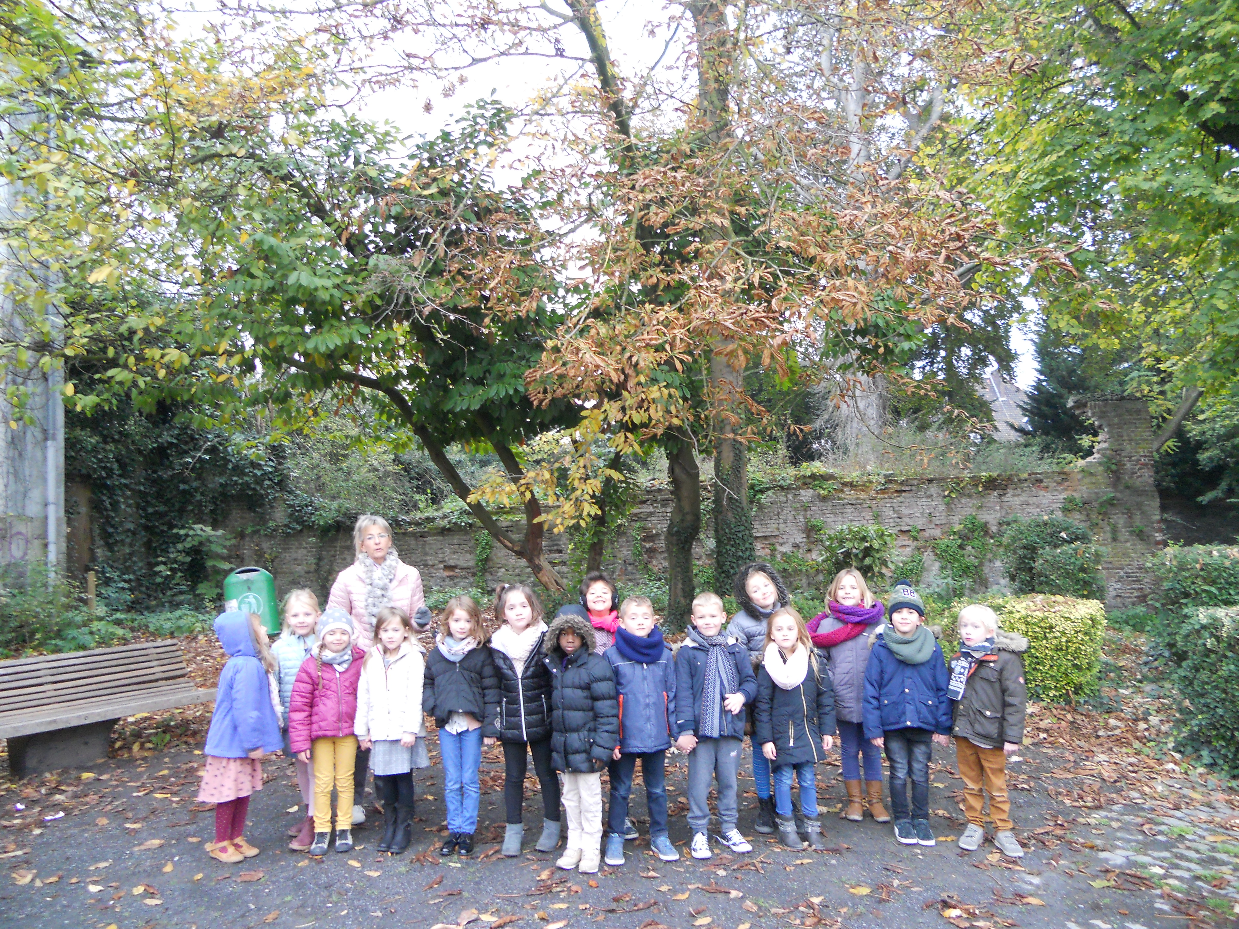 En route pour le Musée des Beaux-Arts, accompagnés d’un gardien de la Paix, Me Patrick, qui nous aide à traverser et à faire un beau rang . Manteaux bien fermés, nous voilà partis ! Un arrêt devant notre arbre des saisons qui nous parle de l’automne !