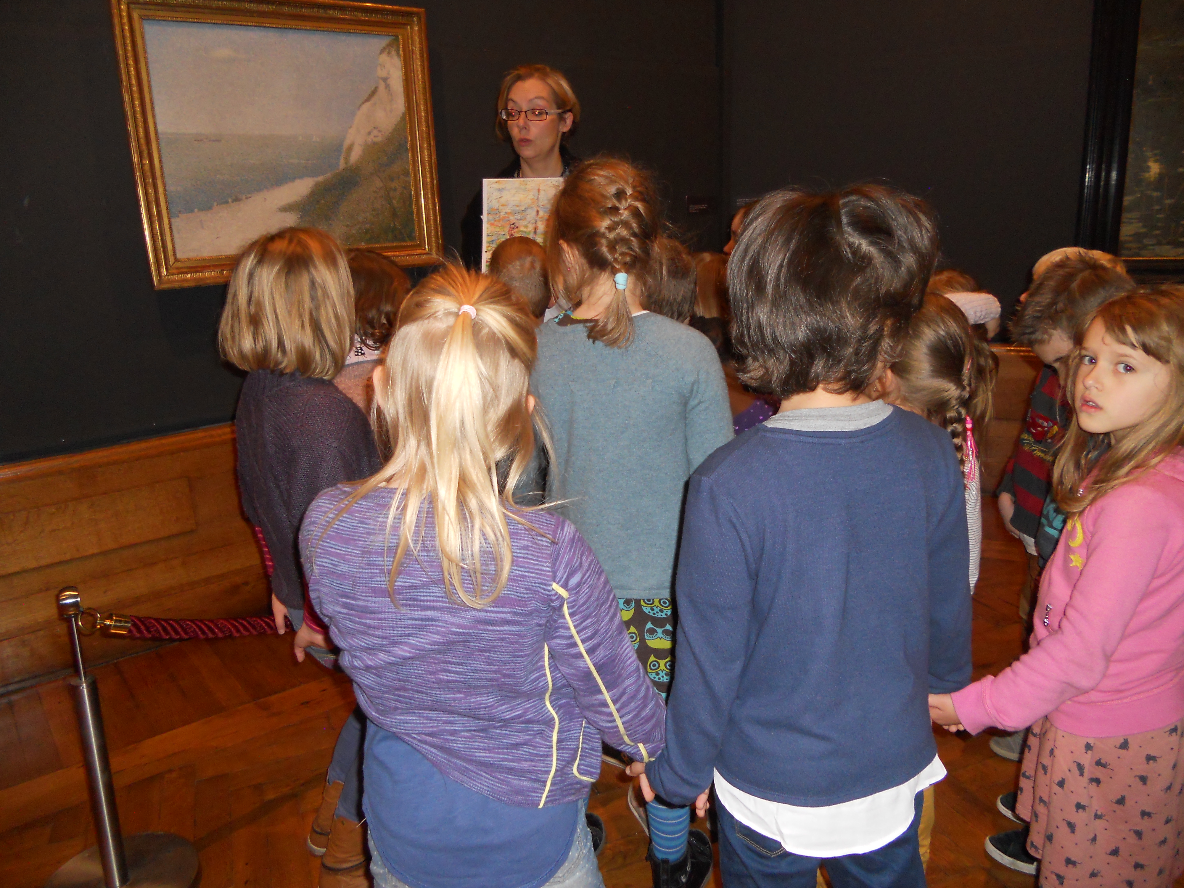 Madame Cindy nous attend . Nous sommes impatients de visiter les différentes salles du Musée ! Nous découvrons le pointillisme avec ses différents tableaux , en particulier celui de Seurat ! Nous sommes impressionnés !